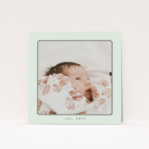 Named “Deco Mint Frame”, this baby announcement card was put together in-house to help you introduce your brand new son or daughter with flair.