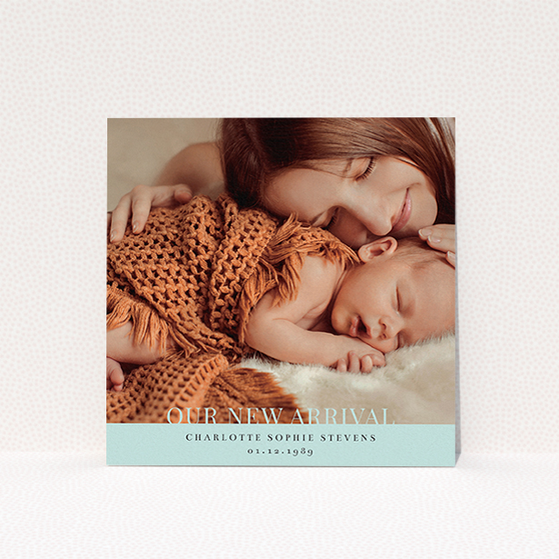 This birth announcement card has space for a single large photo of your babe in arms on the front. Perfect for showing off your bundle of joy in all their glory.