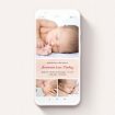With predominantly pink colour scheme, we think this announcement is very pleasing. Our full collection of Birth announcement card Printing”>formal, printed birth announcement cards can be found here.