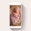 As you may have already noticed, the focal point for this smartphone birth announcement design is a handwritten font. Our full collection of Birth announcement card Printing”>classic, printed birth announcement cards can be found here.