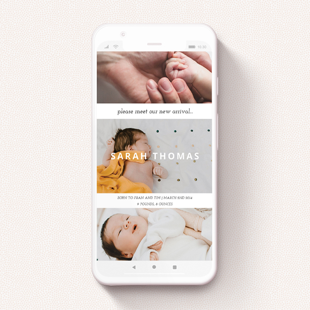 Here are some of our most popular digital birth announcement designs. Our full collection of smartphone birth announcement cards can be found here.