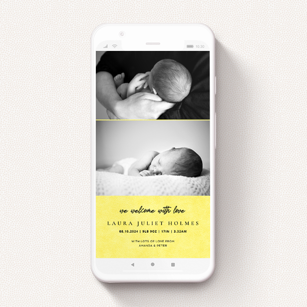 Here are some of our most popular digital birth announcement designs. Our full collection of smartphone birth announcement cards can be found here.