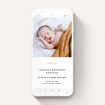 This smartphone birth announcement has been designed to carry an individual, large portrait. Photographs are fantastic at adding an intimate touch.