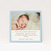 We think our “Blue Polkadots” christening invitation is an elegant way of asking your friends and family to join you in commemorating the day of your baby’s christening or baptism.