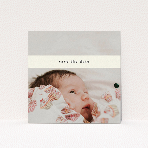 • A christening invite design titled "Classic Christening Photo". It is a square (148mm x 148mm) invite in a square orientation. It is a photographic christening invite with room for 1 photo. "Classic Christening Photo" is available as a flat invite, with mainly white colouring.