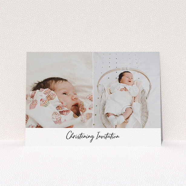 Celebrate your baby’s christening/baptism by sending out our “Side By Side Photo” christening invitation.