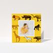 Yellow and orange with whispers of brown, we think this is a card with undeniable appeal. The central focus of this bespoke card is a cute collection of safari animals. This baptism thank you card design is gender neutral, and will work delightfully well for a boy or a girl.