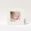 • A baptism thank you card design named "Green Slant". It is an A6 card in a portrait orientation. It is a photographic baptism thank you card with room for 1 photo. "Green Slant" is available as a folded card, with tones of green and white.