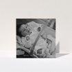 • A baptism thank you card design titled "4 Fine Frames". It is a square (148mm x 148mm) card in a square orientation. It is a photographic baptism thank you card with room for 3 photos. "4 Fine Frames" is available as a folded card, with tones of black and white.