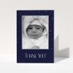 This is a dark blue design, with nuances of silver. We think this christening thank you card design is brilliant for boys and girls alike.