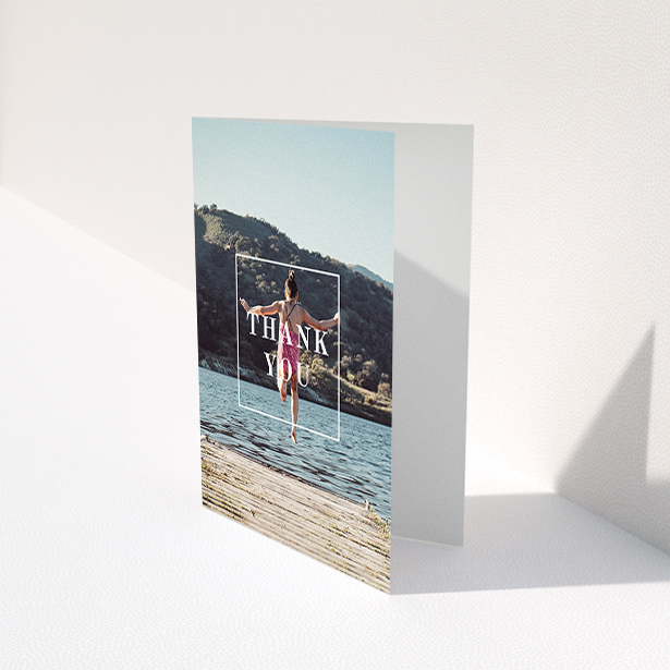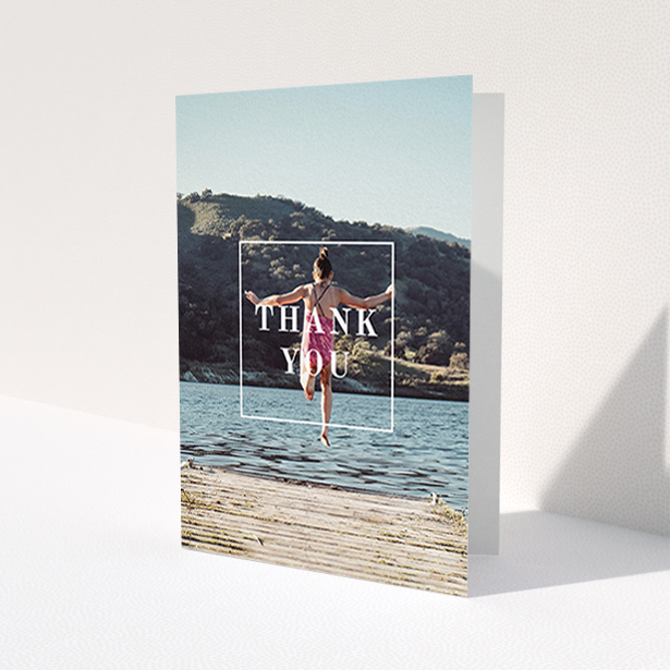• A first holy communion thank you card design named "Central Thanks". It is an A6 card in a portrait orientation. It is a photographic first holy communion thank you card with room for 1 photo. "Central Thanks" is available as a folded card, with mainly white colouring.