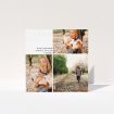 • A first holy communion invitation design titled "Wedge Frame". It is a square (148mm x 148mm) invite in a square orientation. It is a photographic first holy communion invitation with room for 1 photo. "Wedge Frame" is available as a flat invite, with mainly white colouring.