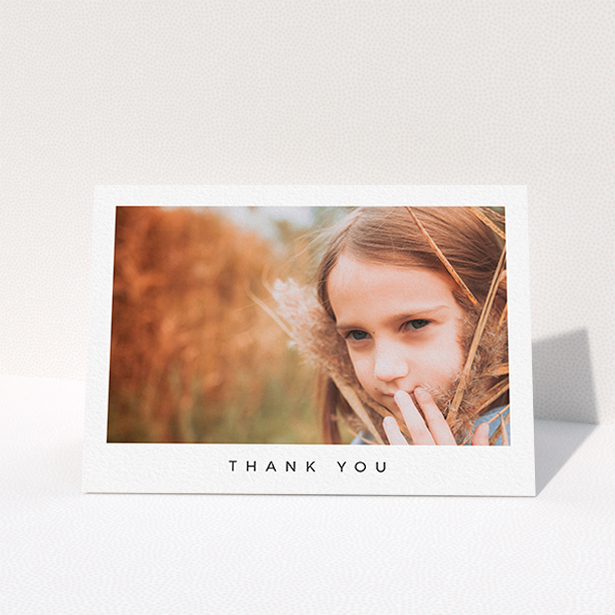 “Simple Thanks” has been put together to hold one large photo of your son or daughter on the front face of the card.