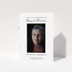 A white and black, a5 portrait multipage funeral programme with a simple style.