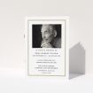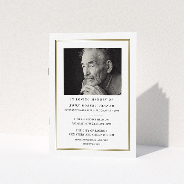 This funeral order of service booklet design has space for one small, distinguished portrait of the dearly departed on the front face.