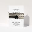 A white and dark gold, a5 portrait funeral order of service with a photographic style.