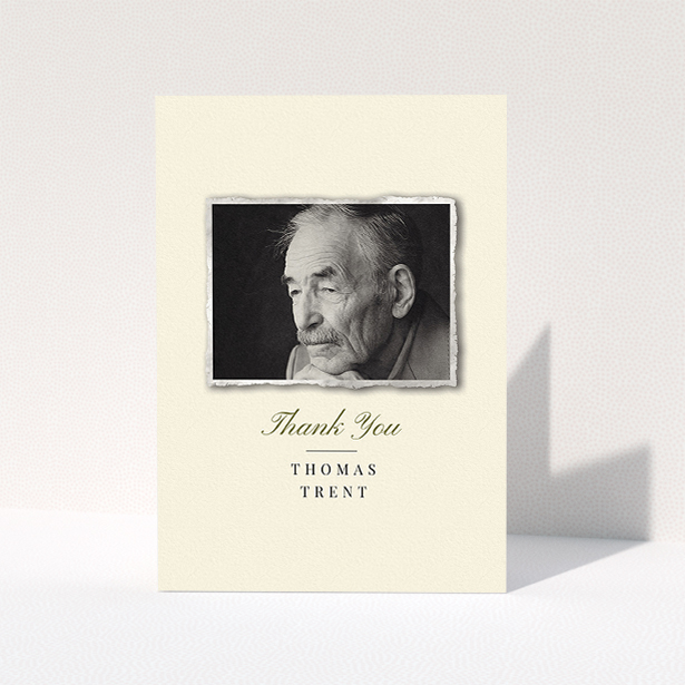 This memorial thank you card has been designed to hold 1 small, tasteful photo of the dearly departed.