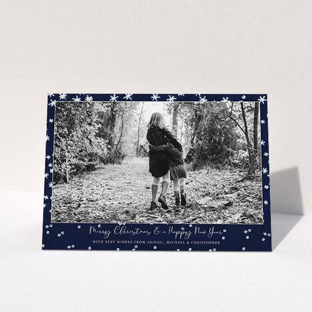 This Christmas card design has been designed to carry one large, cheerful family portrait on the front. It’s a great way of sharing the merriest of wishes from the whole family at Christmas.
