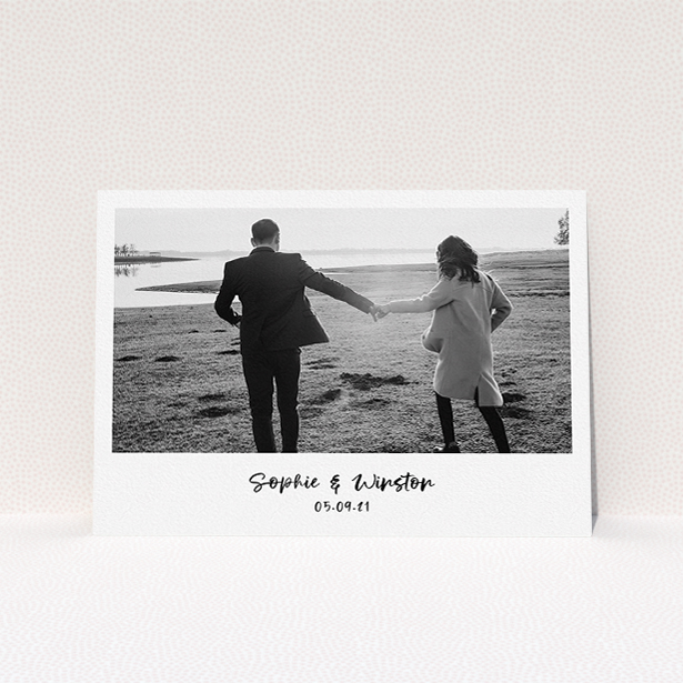 This design has room for 1 large personalised photo on the front side of the template. We think inserting a picture of you and your partner is a beautiful way of telling loved ones about your upcoming wedding ceremony.