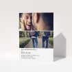 • A wedding save the date design named "Side-by-side". It is an A5 save the date in a portrait orientation. It is a photographic wedding save the date with room for 2 photos. "Side-by-side" is available as a flat save the date, with mainly white colouring.
