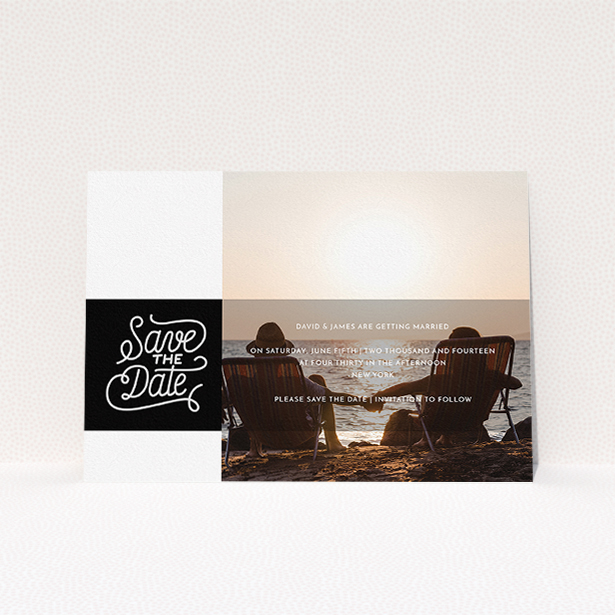 “2 Shades of Grey Typography” has space for a large picture of you and your fiancée/fiancé. Cheerful photographs always add a delightful personal touch to personalised wedding stationery.