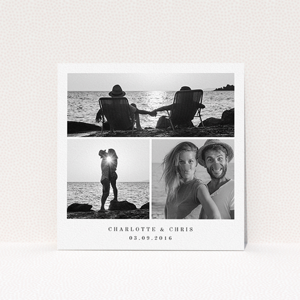 “Classic Tryptic” has room for three photographs of you and your fiancée/fiancé. Cheerful pictures never fail to add a beautiful personal touch to printed wedding announcements.