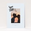Aesthetically, this wedding save the date card has a modern character, with light blue acting as the main colour for the card. A handwritten font helps this bespoke card make a big impact.