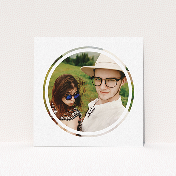 This wedding save the date card has an easy-going, white colour scheme, giving it a light and breezy feel. Aesthetically, it also has a distinctly simple vibe to it. This double-sided card comes with room on the back for further custom content.