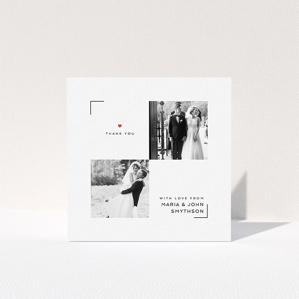 This is a classic wedding thank you card design with space on the front for 2 photos.