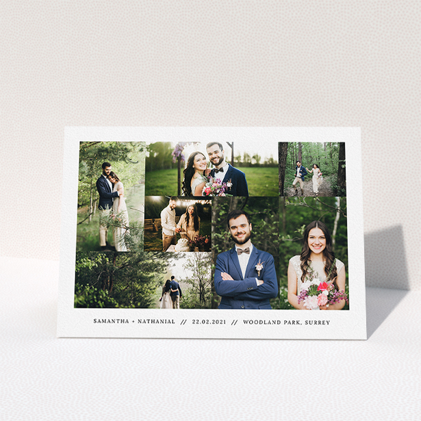 Show your appreciation to the guests that helped make you and your partner’s wedding celebrations so epic, with our “No Gap Photo Arrangement” wedding thank you card.