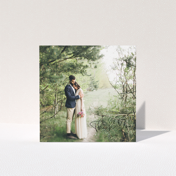 • A wedding thank you card design named "Thanks with Just a Square Photo". It is a square (148mm x 148mm) card in a square orientation. It is a photographic wedding thank you card with room for 1 photo. "Thanks with Just a Square Photo" is available as a folded card.