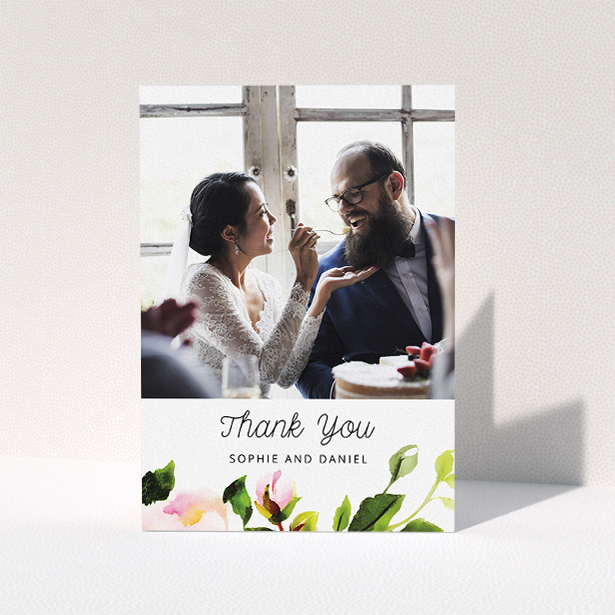 The “Watercolour Photo” wedding thank you card is ready and waiting to be customised. We think it’s ideal for sending your appreciation to your wedding attendees with sophistication.