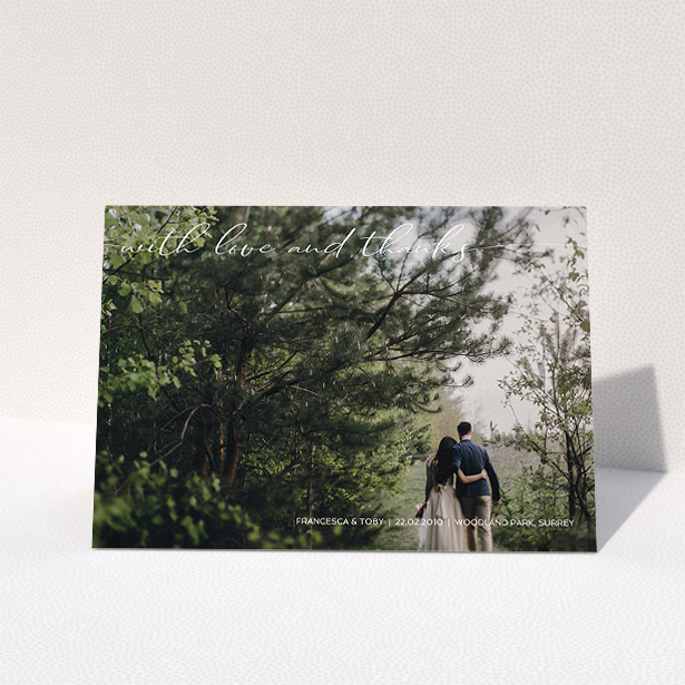 As a design attribute, this wedding thank you card has a handwritten font as the centrepiece.